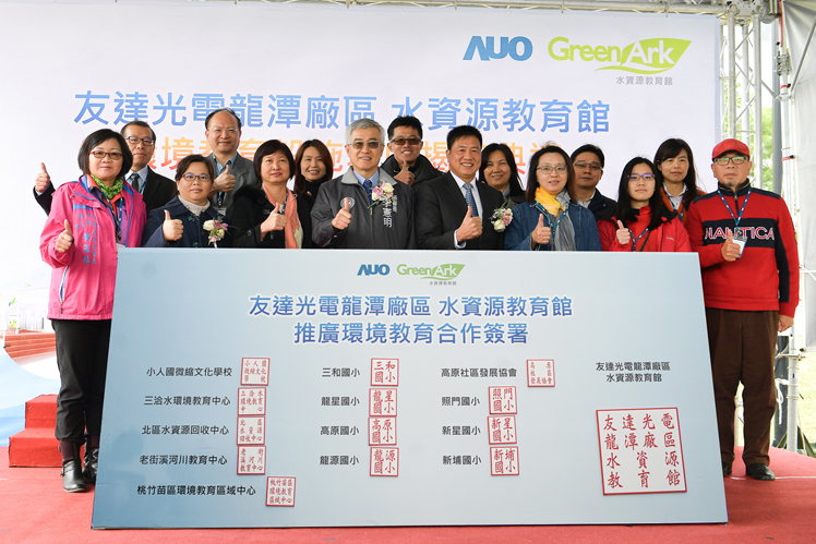 AUO also called on 13 units to cosign a “Letter of Intent on collaborative promotion of environmental education”, including existing environmental education sites in Taoyuan (Window on China Miniature and Cultural Institute, Sanqiasui environmental education center, Northern water recycle center and Laojie River Education Center), schools nearby (Sang Ho Elementary School, Long Xing Elementary School, Gao Yuan Primary School, Long Yuan Elementary School, Jhao Men Elementary School, Hsin Hsing Elementary School, Sin Pu Elementary School), Taoyuan, Hsinchu and Miaoli regional center of environmental education and Gaoyuan community development association. In the future, AUO will share resources including environmental education courses, instructors and sites to create a close and strong partnership and promote the concept of environmental education together.