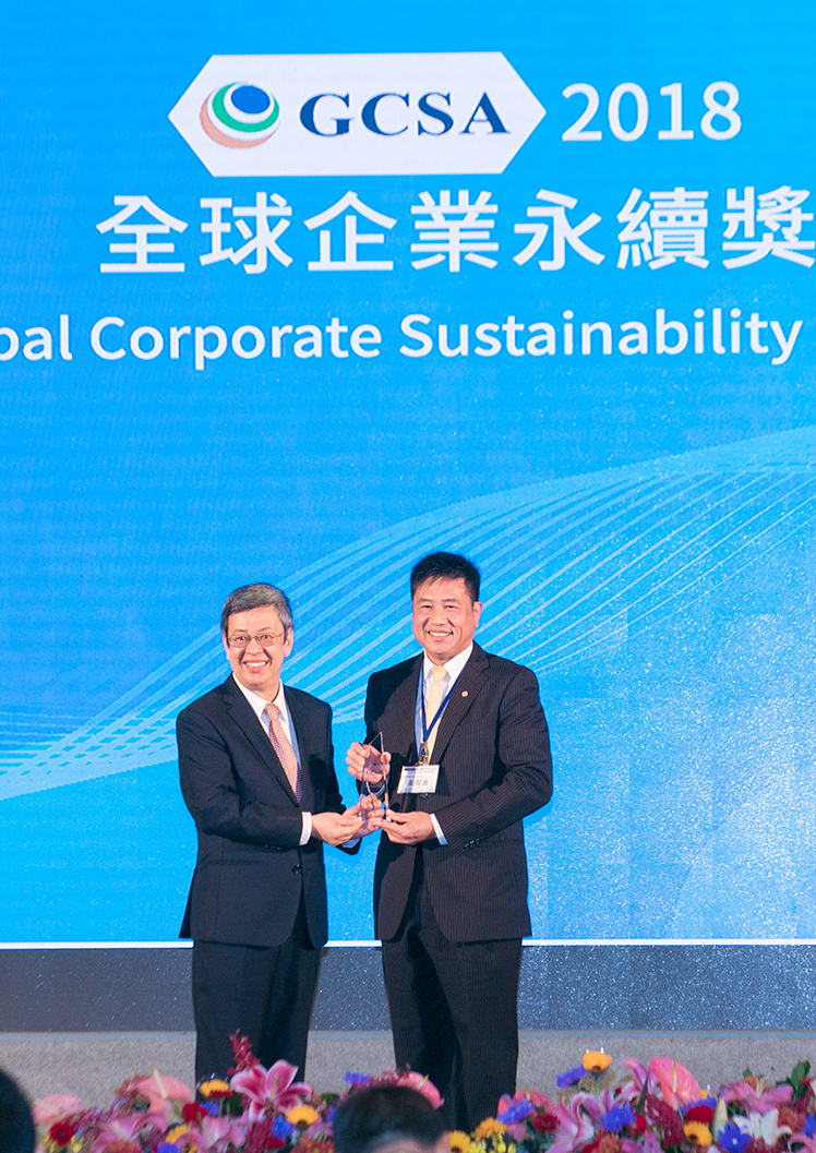 AUO Chairman & Chief Executive Officer Paul Peng (pictured right) was awarded the first annual “GCSA – Professional” for actively promoting the industry’s sustainable development.