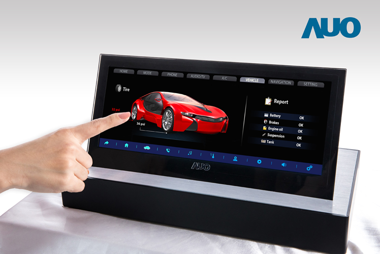 Free-form High Performance Car Displays with Superior Reliability & Design Flexibility In the past years, AUO has devoted tremendous effort in the development of high potency car displays to match modern smart cars. For CID applications, AUO will show the world’s first(*)13.2-inch free-form display featuring high resolution of 1200x1600, NTSC 85% high color saturation and 1000-nit brightness, with the gate circuit moved to the display active area to release extra space on the sides for free-form designs. Meanwhile, symmetrical holes are drilled in the active area to allow for more design flexibility, such as having buttons and control dials installed.