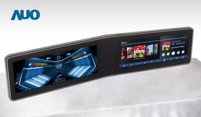AUO’s V-shaped curved vehicle cockpit display joins a cluster and a CID panel by direct bonding lamination