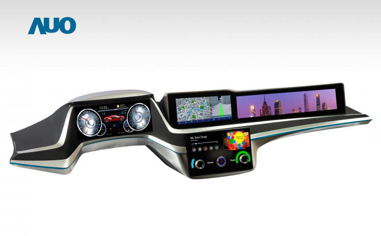 AUO’s high performance automotive display, combining the cluster, CID and front passenger seat displays