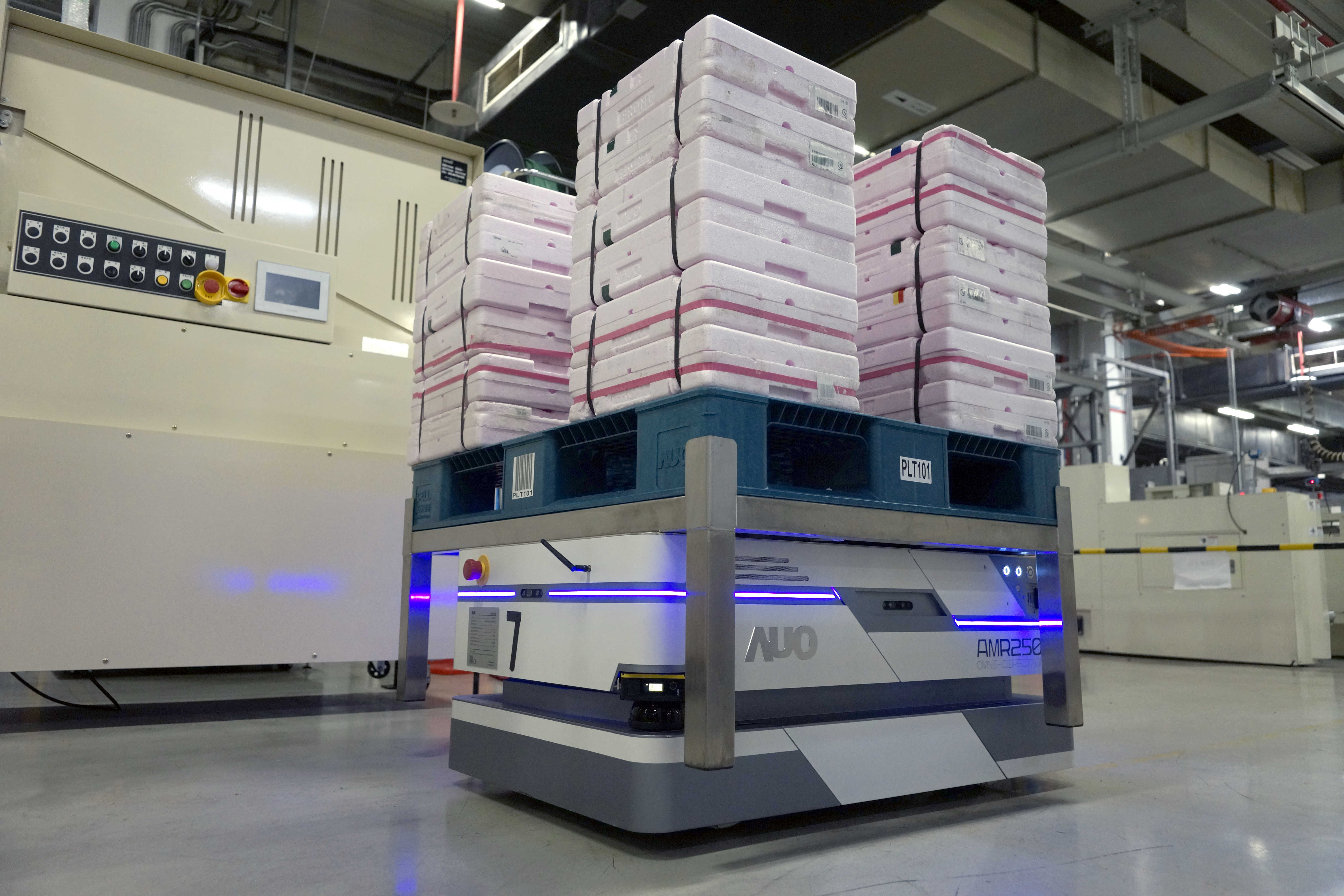 申博太陽城運(yùn)用數(shù)字孿生系統(tǒng),結(jié)合AMR無人搬運(yùn)車進(jìn)行派送,達(dá)成低庫存高效率的智能化倉儲(chǔ)物流管理。