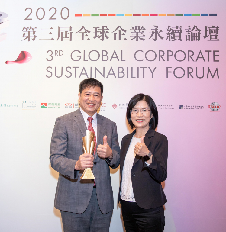 友達(dá)在臺(tái)灣企業(yè)永續(xù)獎(jiǎng)所評(píng)比環(huán)境、社會(huì)、治理等各面向的永續(xù)績效均獲高度肯定 (左:友達(dá)光電董事長暨執(zhí)行長彭雙浪 ,右 :友達(dá)光電永續(xù)長古秀華)