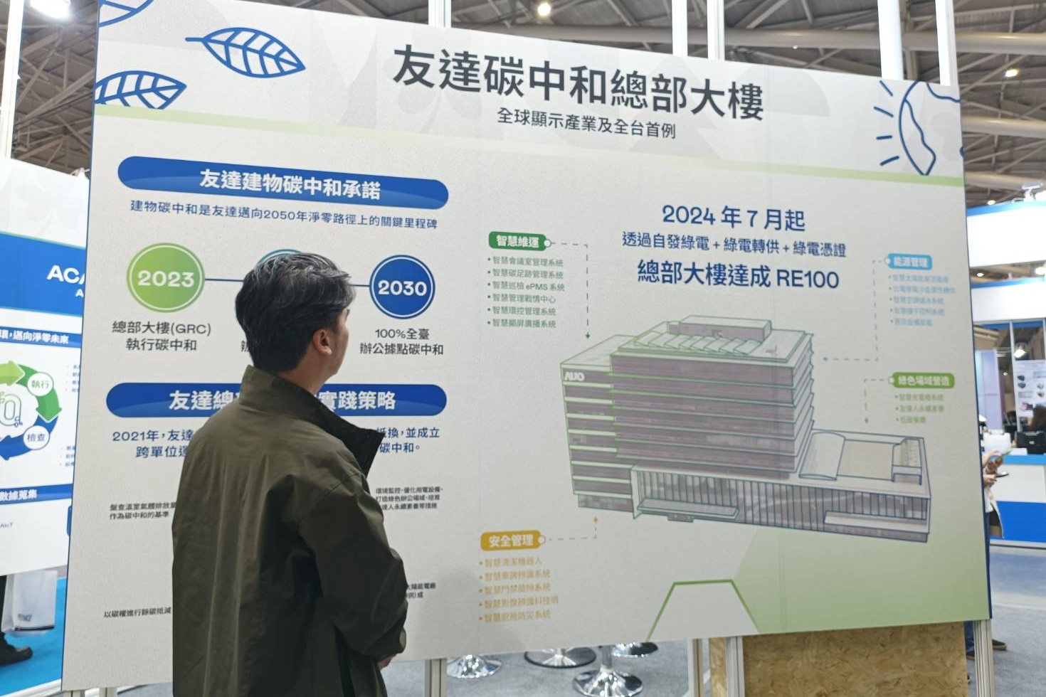 友達(dá)結(jié)合旗下友達(dá)宇沛、友達(dá)數(shù)位與能源事業(yè)之多元服務(wù),展示結(jié)合「節(jié)能、創(chuàng)能、能源管理、售電服務(wù)」之全方位碳中和建物解決方案,包含淨(jìng)零智慧樓宇系統(tǒng)、深度節(jié)能服務(wù)、智慧冰機(jī)節(jié)能方案、再生能源電力服務(wù)等。